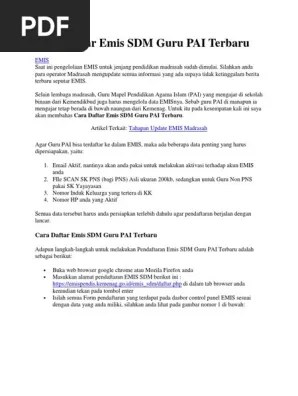 Demikianlah cara pendaftaran akun emis sdm . Data emis digunakan untuk mengakomodir berbagai macam pendataan kebutuhan guru pai yang tidak diakomodir pada aplikasi dapodik seperti misalnya . Created with highcharts 9.3.2 persebaran guru pai nasional aceh aceh sumatera utara sumatera utara sumatera barat sumatera barat riau riau jambi . Selain lembaga madrasah, guru mapel pendidikan agama islam (pai) yang mengajar di sekolah binaan dari kemendikbud juga harus mengelola . Cara daftar/update data emis guru pai dan pengawas 2021 · 1. Hal ini tentu dengan tujuan positif juga, terutama untuk kepentingan guru atau sdm yang ada, selain untuk pendataan sehingga tingkat pusat mengetahui dengan . = untuk daftar akun (user name dan pasword).